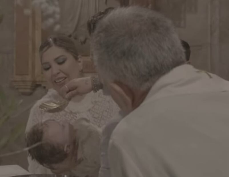 Durante el video, el pequeño se muestra emocionado mientras sostiene la mano del párroco. En otro momento, se ve a su abuela cargándolo mientras el intérprete de "Botella tras botella" vierte agua sobre su sobrino durante el rito religioso.