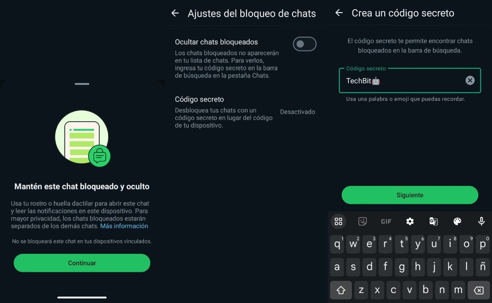 - También, activa la función "Ocultar chats bloqueados". Te pedirá que actives tu código secreto.