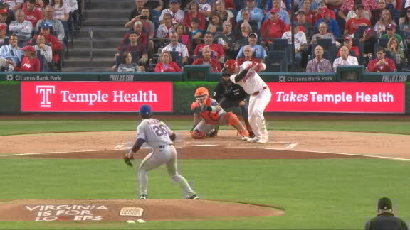 El dos veces MVP de la Liga Nacional Bryce Harper bateó de primero por primera vez desde 2022. Recibió un strike cantado para iniciar el juego contra el novato Nolan McLean (4-1).