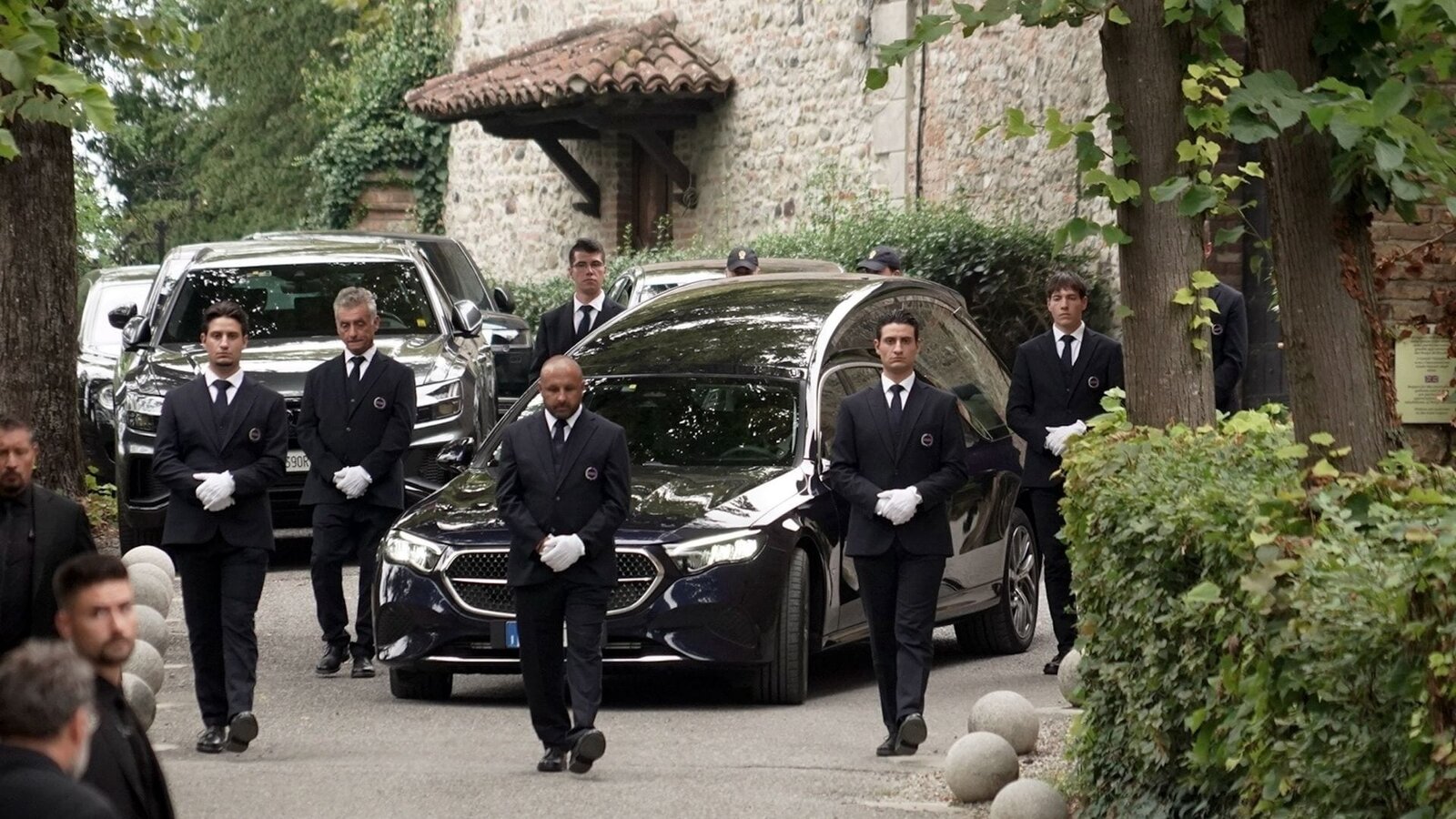 El féretro del icónico modisto llegó lentamente al pequeño pueblo de Rivalta a bordo de un coche fúnebre, acompañado por seis escoltas vestidos de traje. Las campanas repicaron en señal de duelo mientras los habitantes guardaban respeto.