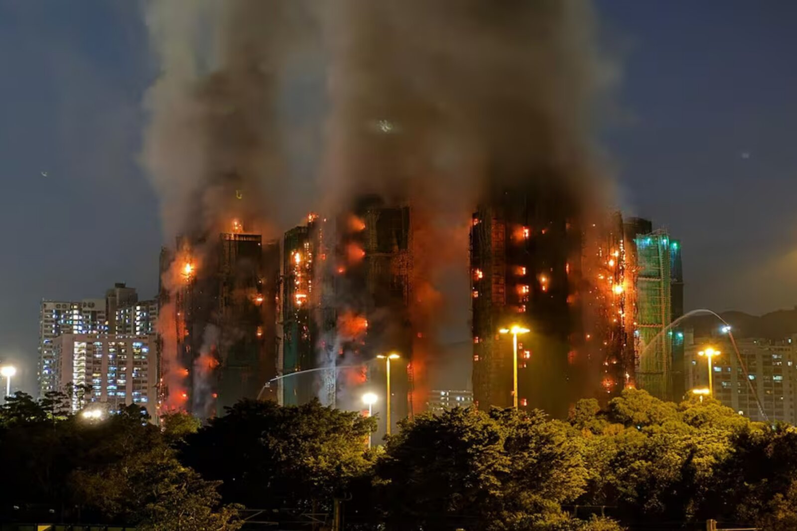 El furioso incendio en el distrito de Tai Po, ubicado en los Nuevos Territorios de Hong Kong, se propagó rápidamente a través de un andamio de bambú y una red de construcción que se habían instalado en el exterior del complejo. Este tipo de andamio de bambú es común en la ciudad, aunque el gobierno había anunciado su eliminación gradual de proyectos públicos por preocupaciones de seguridad.