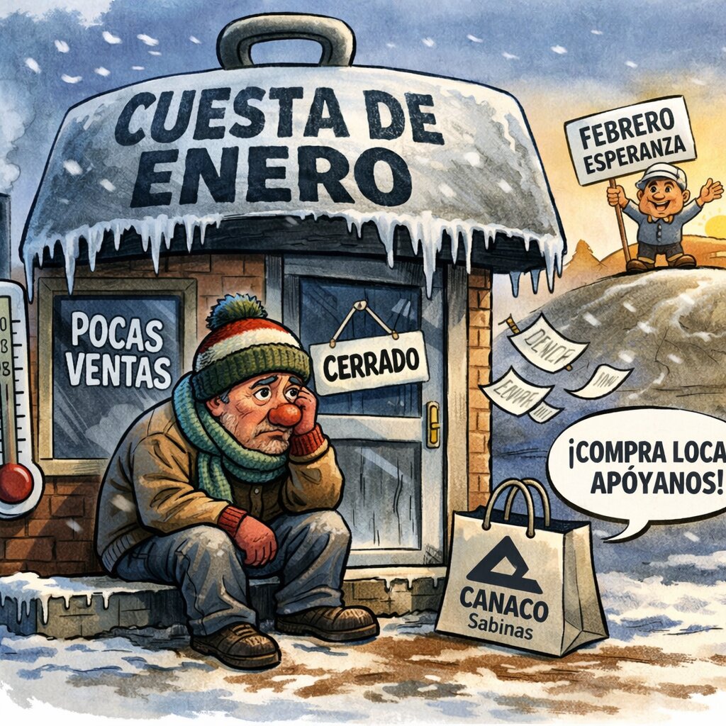 Caricatura editorial - Cuesta de enero frena actividad comercial en Sabinas