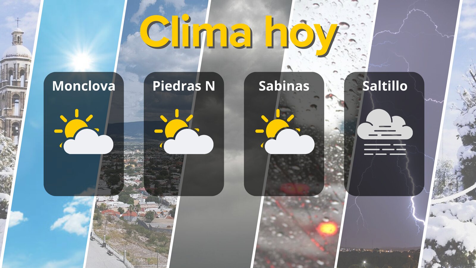 Mientras que Sabinas oscilará entre 24 °C y 8 °C, ambas ciudades con viento moderado de noroeste y sureste, respectivamente.