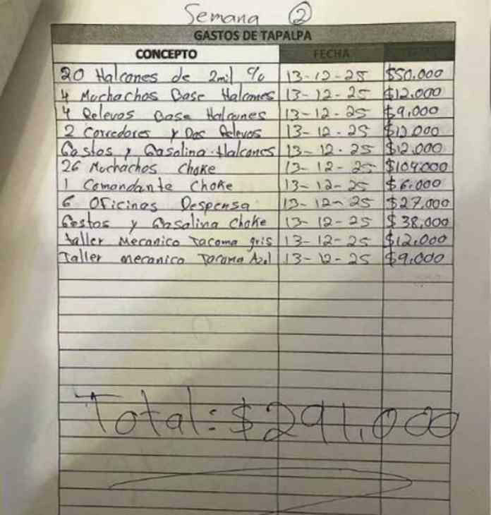 En la misma zona, la nómina total ascendía a 509 mil 950 pesos, incluyendo otros perfiles como “muchachos choque”, quienes en conjunto recibían 104 mil pesos. También se registran gastos logísticos en gasolina, talleres, despensas y otros conceptos operativos.