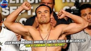 Juan Manuel 'Dinamita' Márquez, excampeón mundial de boxeo en cuatro divisiones, expresó su preocupación por el auge de los combates entre influencers y creadores de contenido, los cuales, a su juicio, están afectando la integridad del boxeo profesional. El ídolo mexicano -- leer más