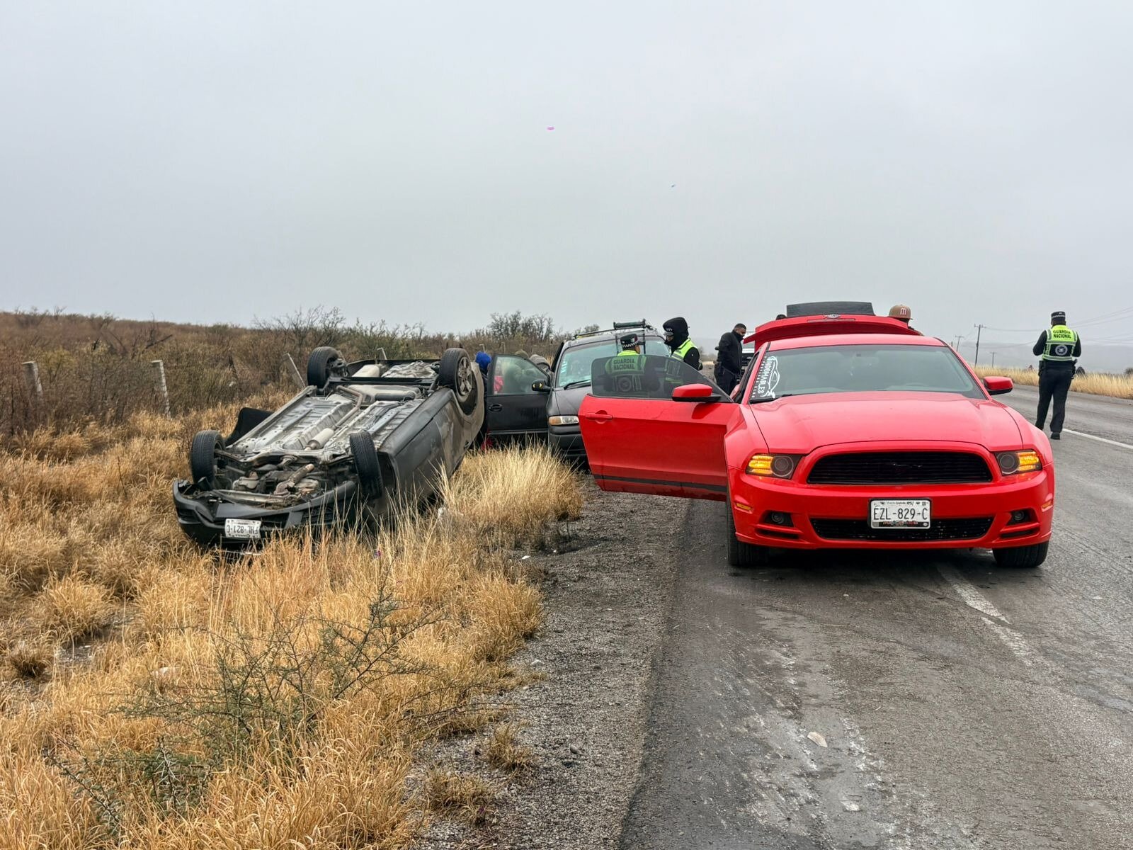 La volcadura ocurrió a la altura del kilómetro 88, en el tramo conocido como El Sauz, dentro del trayecto Sabinas–Monclova, cuando el vehículo involucrado, de color gris, terminó fuera de la cinta asfáltica por causas que aún no han sido precisadas por las autoridades.