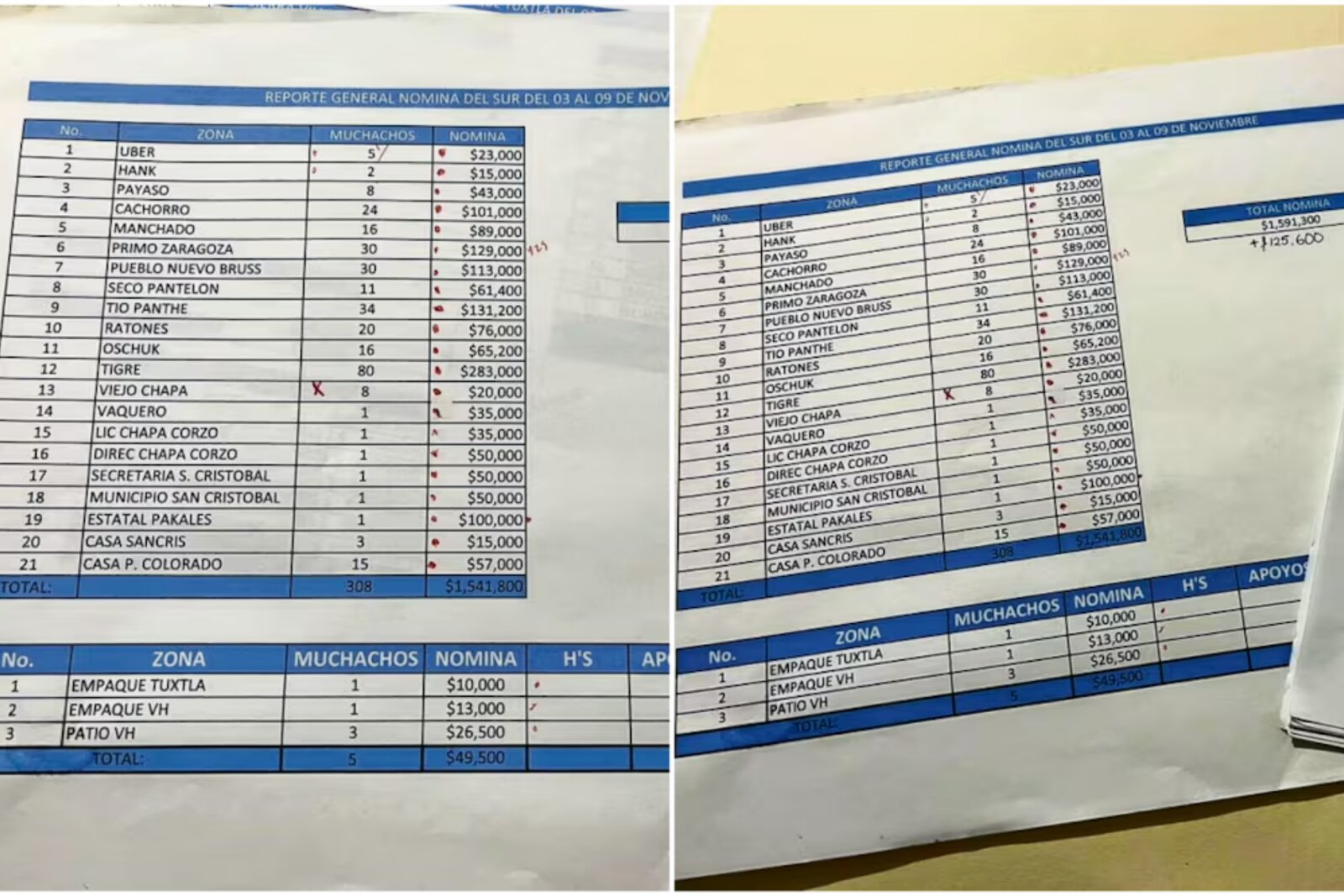 Para la célula delictiva en Tzanembolóm, municipio de Chenalhó, el grupo criminal destinaría 283 mil pesos semanales para 80 integrantes divididos en células de 10 personas. En Pantelhó, el gasto semanal reportado asciende a 131 mil 200 pesos para 43 hombres.