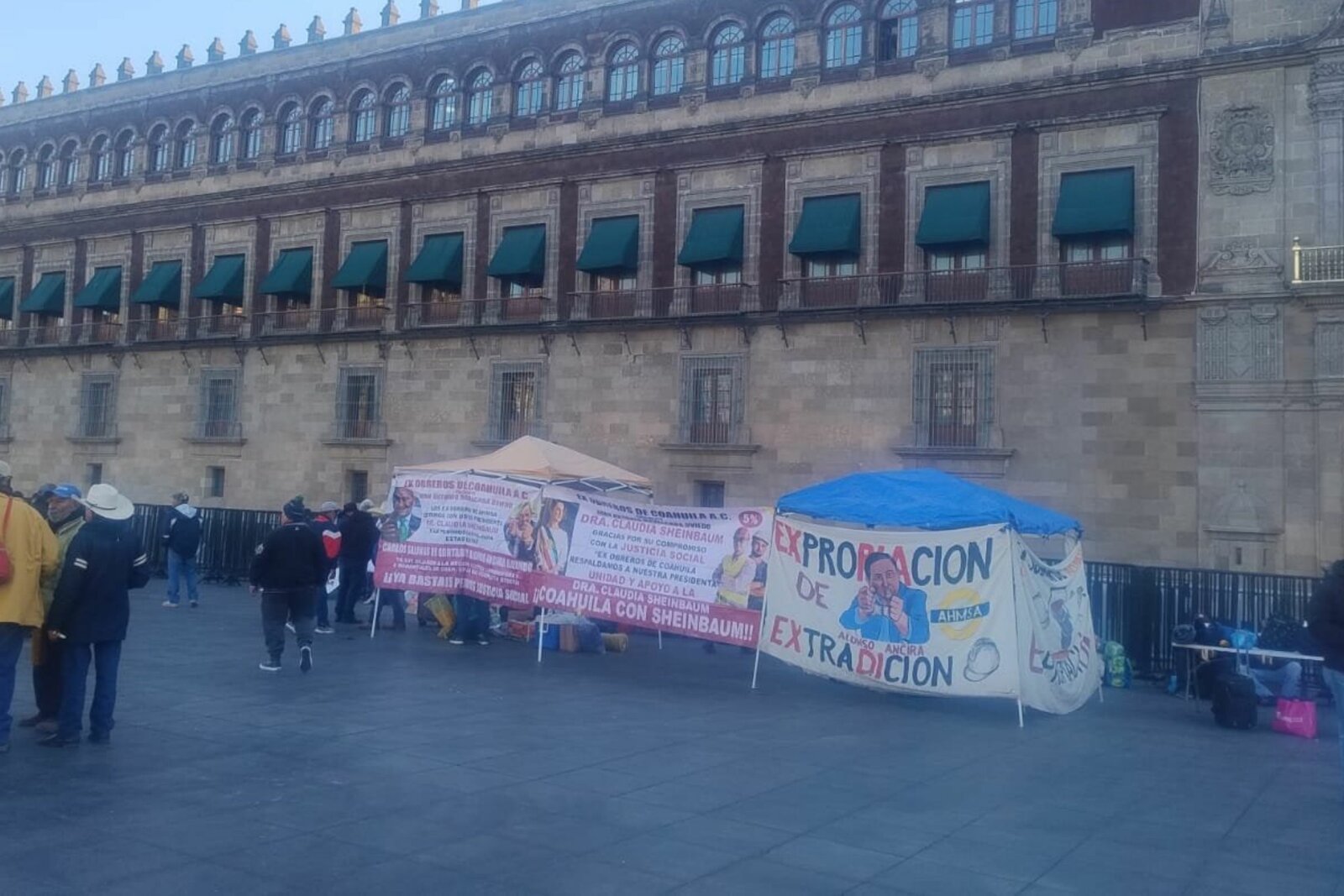 Trabajadores de AHMSA mantienen plantón en el Zócalo y buscan diálogo con Claudia Sheinbaum