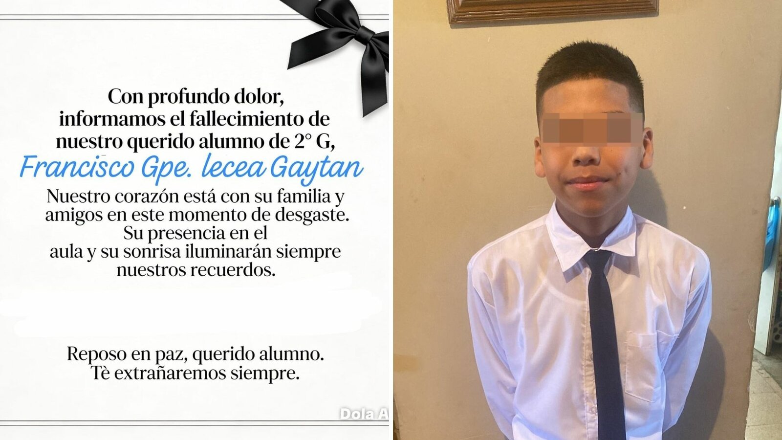 Luto en secundaria por muerte de estudiante Francisco de 14 años