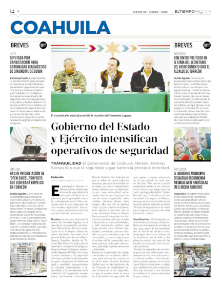 Portadas impresas de El Tiempo de Monclova, Coahuila, México.