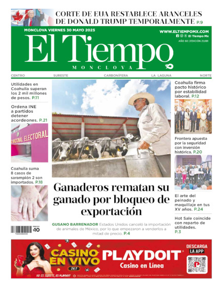 Portadas impresas de El Tiempo de Monclova, Coahuila, México.